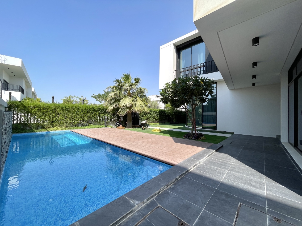 بالمرافق التالية: مسبح, حديقة, تكييف, شوارع مرصوفة, مطبخ منفصل, غرفة غسيل, غرفة خادمة, كاميرات أمنية, بلكونه, مواقف سيارات, مطبخ مفتوح, غرفة حارس, نصف مؤثثة