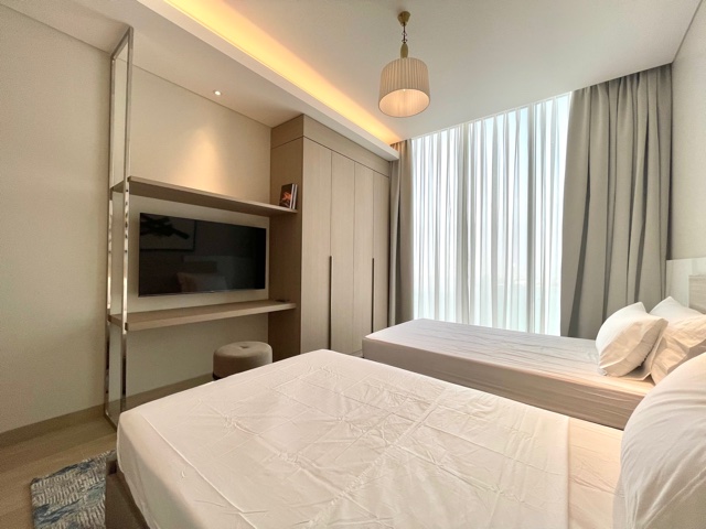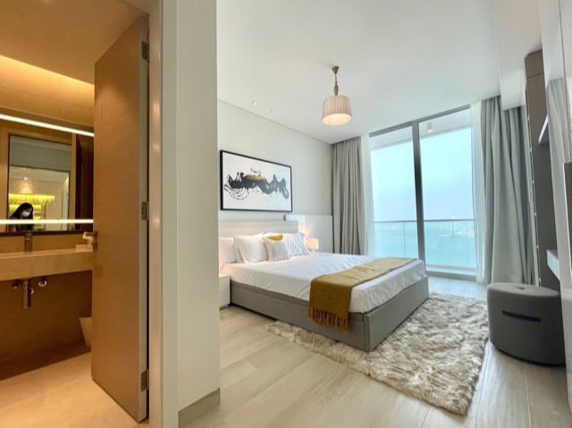 With the following facilities: Gym, Pool, Air Conditioner, Kitchen, Laundry, Security Guard, Equipped Kitchen, Central A/C, Including electricity, BBQ, Balcony, Car Parking, Sea View, Furnished