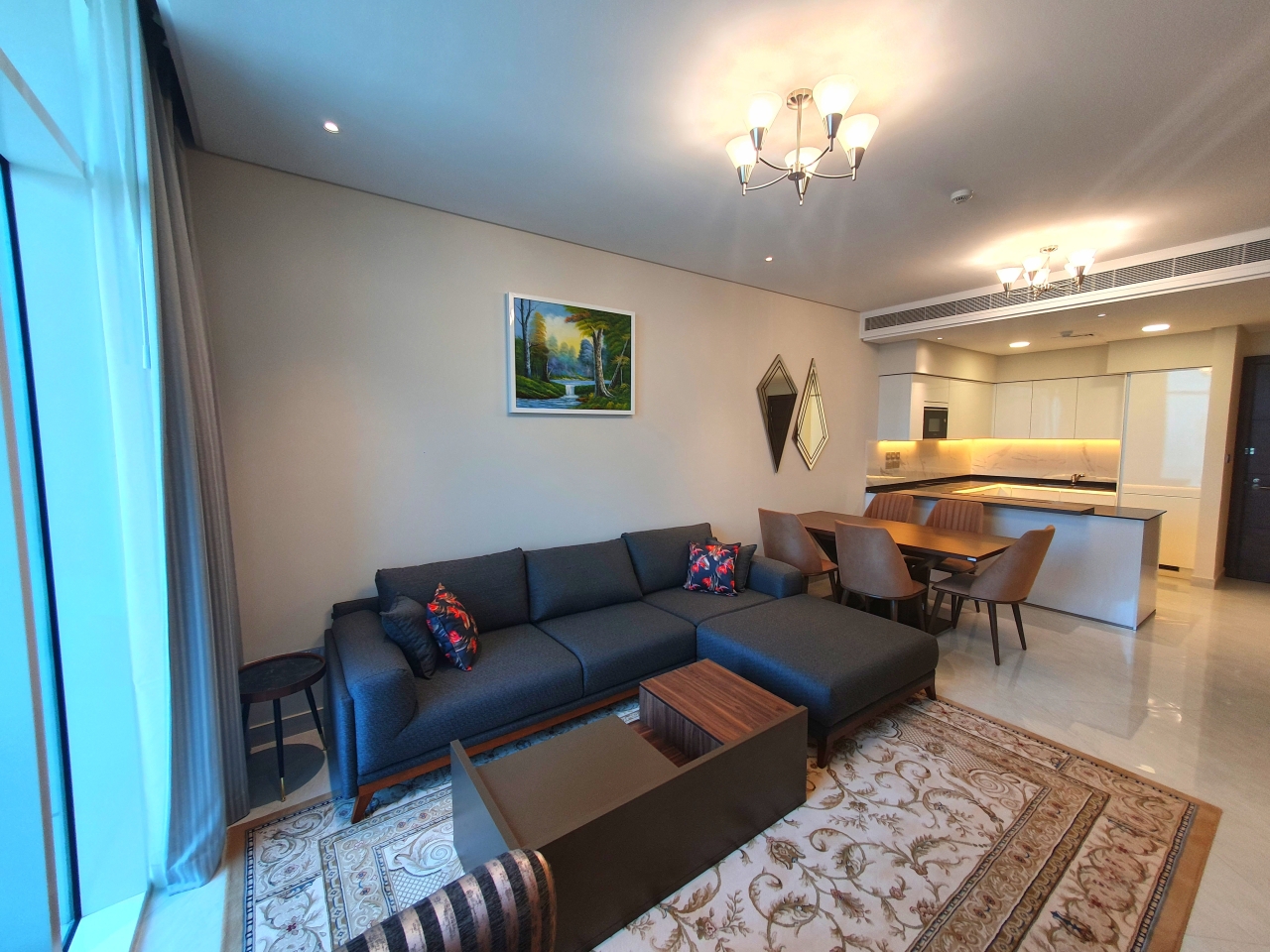 With the following facilities: Gym, Pool, Air Conditioner, Kitchen, Laundry, Equipped Kitchen, Central A/C, Including electricity, BBQ, CCTV, Balcony, Car Parking, Open Kitchen, Security System, Furnished