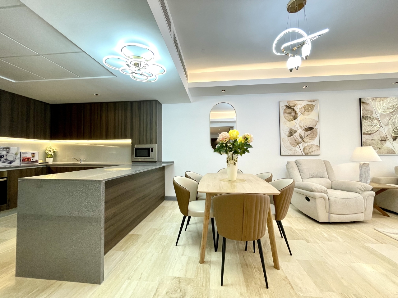 With the following facilities: Gym, Pool, Air Conditioner, Kitchen, Equipped Kitchen, Central A/C, Elevator, CCTV, Balcony, Car Parking, Playground, Games Area, Reception, Open Kitchen, Sea View, Security System, Furnished
